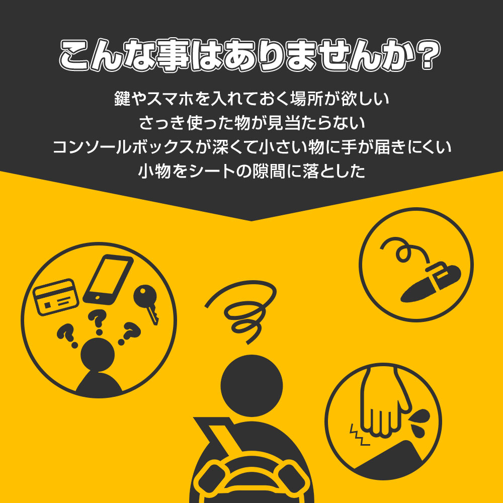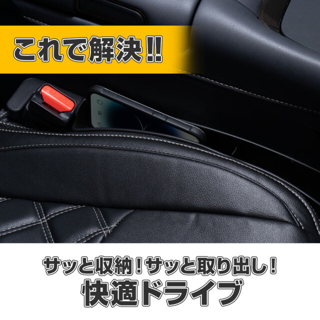 | シートとコンソールの隙間に差し込むだけの簡単設置 |