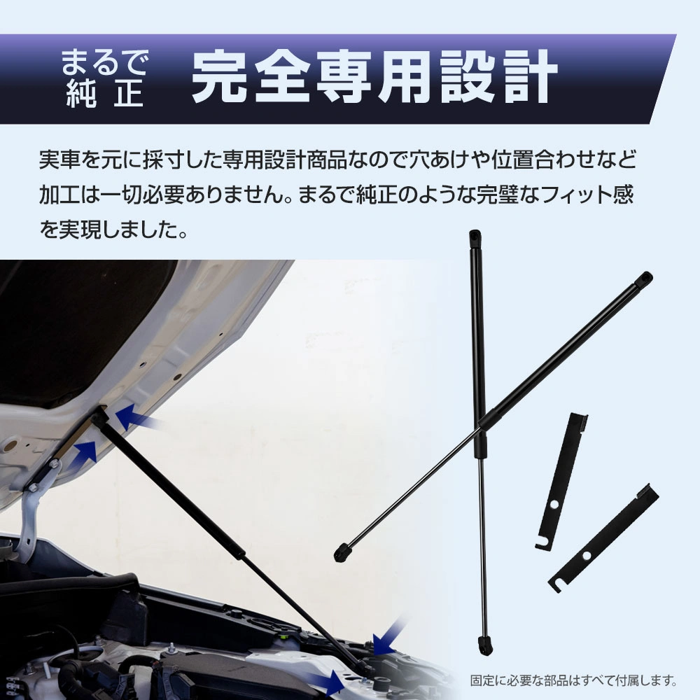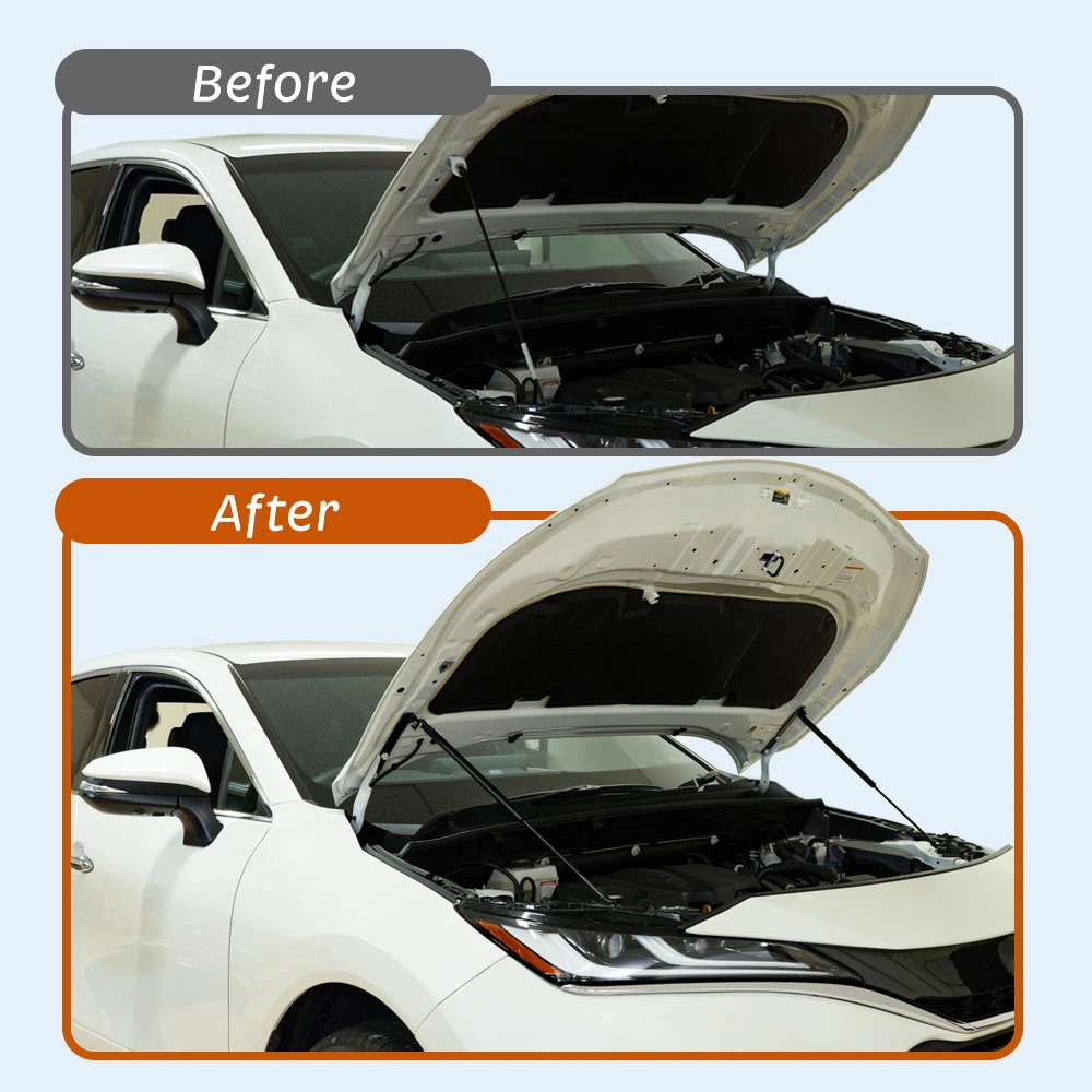 ハリアー 80系/RAV4 50系用のボンネットダンパーは、エンジンフードの開閉をより簡単にするためのカスタムパーツです。ボルトオンで簡単に装着可能!穴あけなどの加工が不要で、油圧の力を利用して軽い力でボンネットを開閉できます。メンテナンス効率を向上させ、日常の作業を快適にする非常に満足度の高いアイテムです。