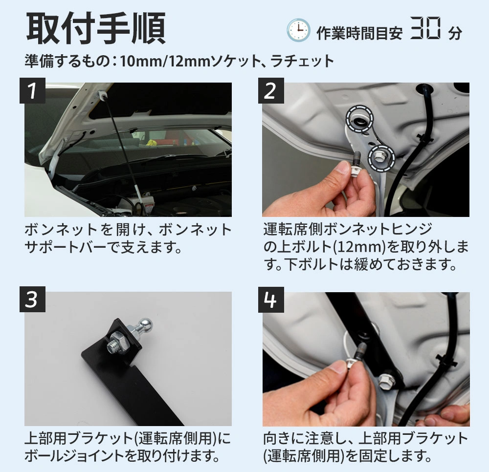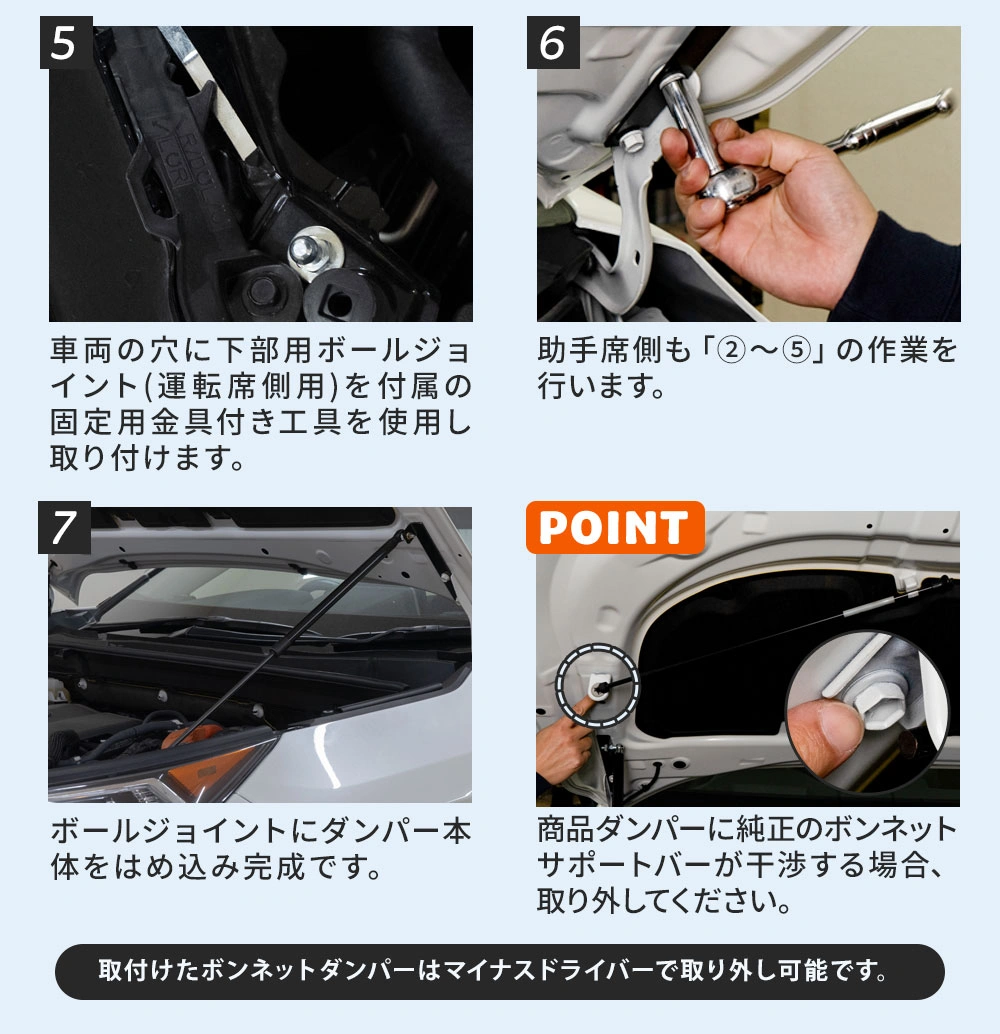 | ※作業順番や向き、左右を確認の上、取り付けをしてください。 ※使用頻度や環境状況により本体の寿命が短くなる場合がございます。 ※取付けの際、純正ブラケット(支え棒)が商品と干渉する場合は、純正部品を取り外してください。 ※グレード・追加オプション・エアロパーツ・社外品等を装着している車によっては形状が合わない場合があります。お乗りのお車と商品画像を見比べて合うことをご確認の上、ご購入をお願いいたします。 ※車両適合情報は本製品発売時のものになります。その後の車両側の仕様変更や改修によっては正常に動作/適合しない場合がありますのでご注意ください。 ※取り付けの際の工賃等の請求は一切受け付けません。 ※お取り付けは、自己責任にて、作業を行って下さい。お客様責任による破損での対応は受付できません。 ※必ずフィッティング確認を行ってから取り付けてください。 ※社外品につき小傷等がある場合がございますが、使用に支障がない限り交換、返品はいたしません。 ※本製品を使用したことによる直接、間接的に生じた事故、損害、破損についての責任は弊社は一切負いません。 ※モニターの環境により商品の色合いや素材感などが異なる場合がございます。 ※商品は予告なく仕様変更もしくは販売終了している場合がございますのであらかじめご了承ください。 ※国外への配送はEMSでの発送です。ご注文後、弊社よりメールにて別途送料などをお知らせいたします。 ※本商品は2025年9月5日仕様変更しました。 |