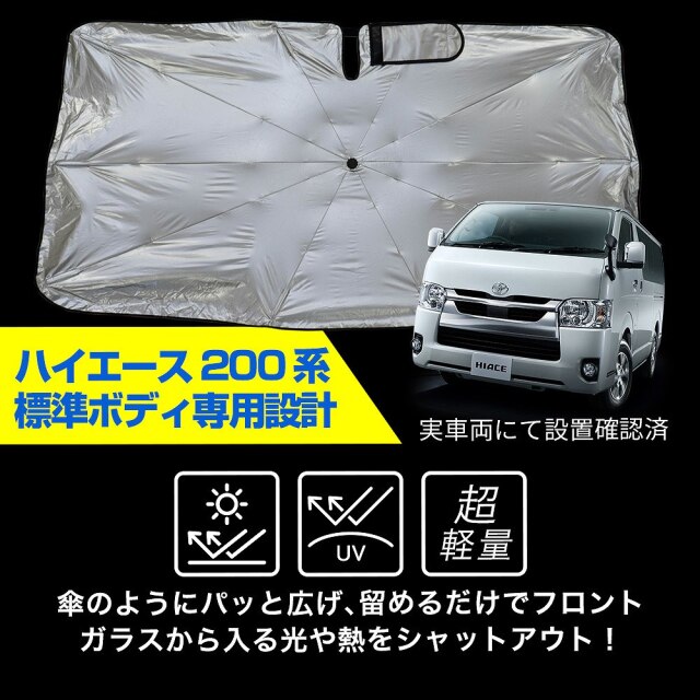 | 製品名: | ハイエース 200系 標準ボディ 4 5 6 7 型 専用 傘型 サンシェード 1p 日除け 車のサンシェード カーシェード 遮熱 遮光 |