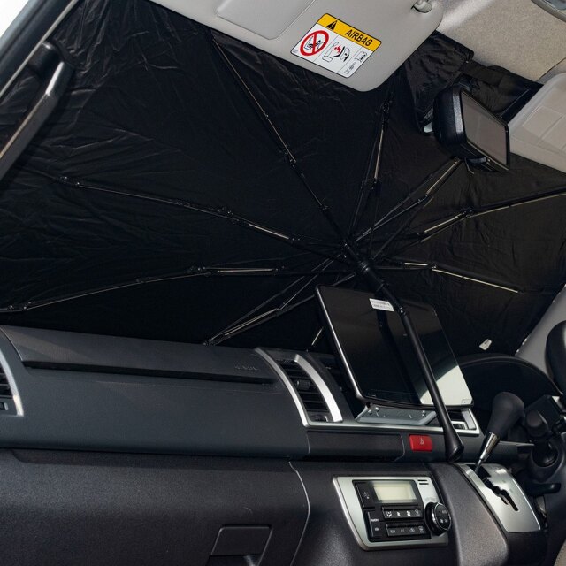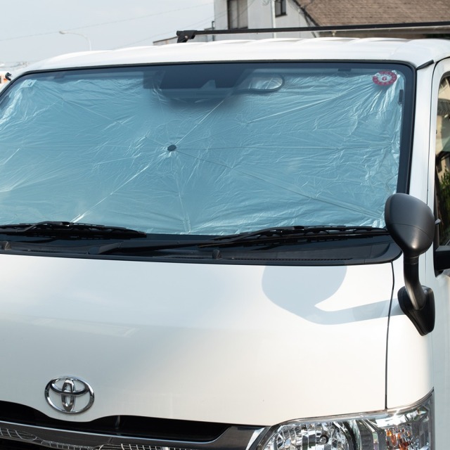ハイエース 200系 標準ボディ 4 5 6 7 型 専用の傘型サンシェードは、車中泊や日常のドライブを快適にする必須アイテムです。UVカットと紫外線カット機能で、直射日光をしっかりブロックし、内装の劣化を防ぎます。さらに、遮熱・遮光効果で車内の温度を快適に保ち、エアコンの効率もアップ!簡単取付で、使わない時は収納袋にコンパクトにしまえるのも嬉しいポイントです。ぴったりフィットするデザインで、細部までこだわり抜かれています。