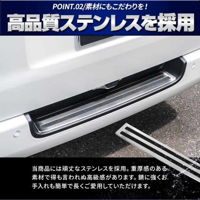 [ 商品概要 ] ハイエース 200系 標準ボディ 専用 リアバンパーステップガード [ 材質 ] ステンレス [ セット内容 ] 1P+取扱説明書