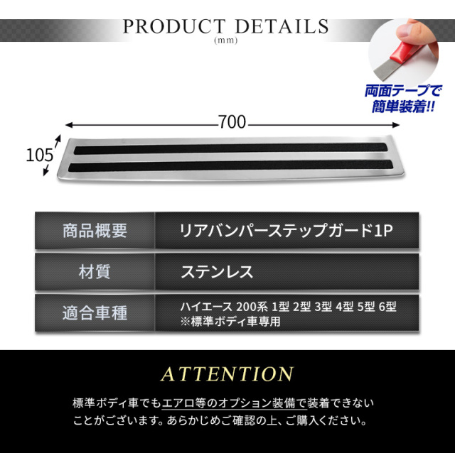 | 製品名: | ハイエース 200系 標準ボディ 専用 リアバンパーステップガード |