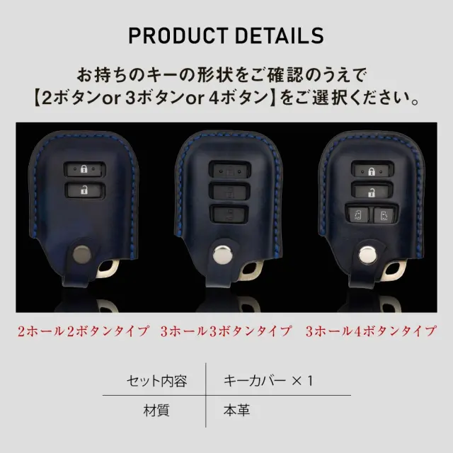 トヨタの汎用ランゲスレーベンレザーキーカバーは、ハイエース200系やレジアスエース200系、ポルテ、スペイドに対応した高品質なアクセサリーです。本革を使用し、耐久性と高級感を兼ね備えています。2穴から4ボタンまでの多様なキーに対応し、デザイン性と機能性を両立。スタイリッシュなデザインでキーをしっかりと保護します。特別な車のアクセサリーとして最適です。