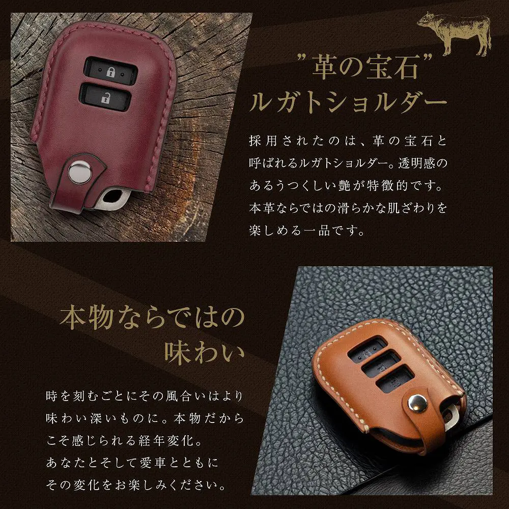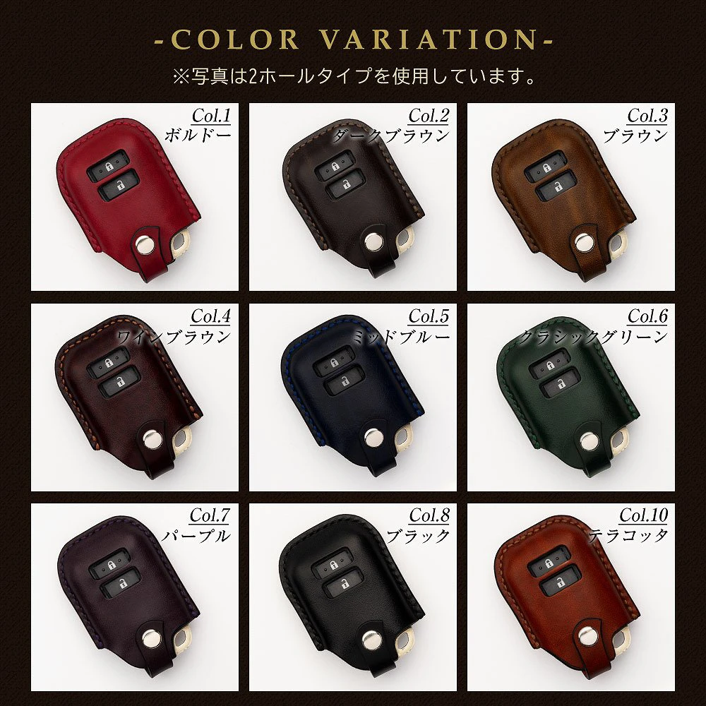 トヨタ汎用 ランゲスレーベン 本革スマートキーカバーです。 [ 材質 ] ルガトショルダー/ベルギー産、エル・ヴァケーロ/ フランス産原皮、セミアニリンレザー/ オーストラリア産原皮 [ カラー ] ボルドー、ダークブラウン、ブラウン、ワインブラウン、ミッドブルー、クラシックグリーン、 パープル、ブラック、テラコッタ、迷彩タイガー、迷彩フォレスト、迷彩コバルト、迷彩スメラルド、迷彩ネロ、迷彩バービー、迷彩ロッソ、ダークチェスナット、サンセットブラウン [ セット内容 ] キーカバー×1 [ サイズ ] 2ホール2ボタン/3ホール3ボタン/3ホール4ボタン ■適合車種 ハイエース 200系 4型 5型 6型 7型 H25.12~ レジアスエース 200系 4型 5型 6型 7型 H25.12~ ポルテ NSP14#系 H24.6~ スペイド NCP14#系 H24.6~