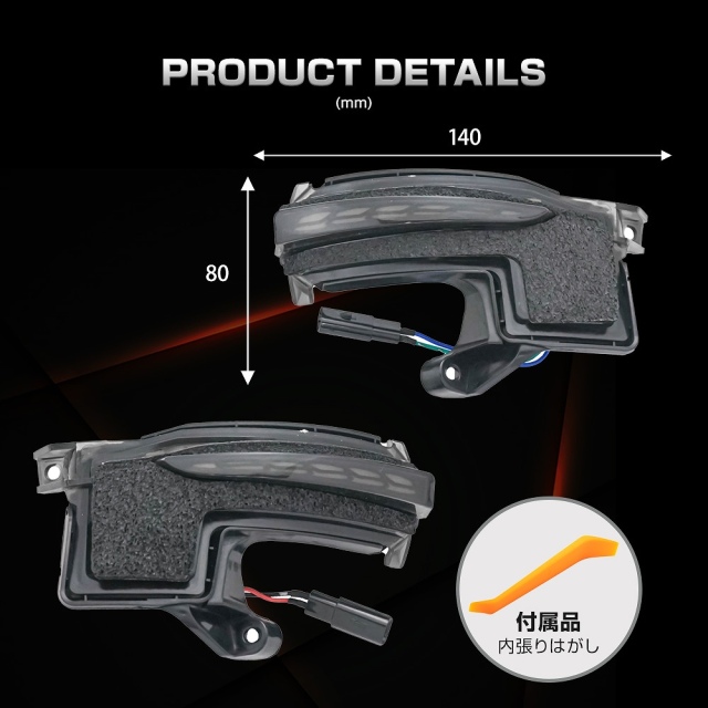 | ※車検時は必ず「点滅式」に発光パターンを切り替えてください。 ※お取り付け、お取り外しの際にミラーカバーのツメが割れやすいため、作業は慎重に行ってください。 ※付属品は適宜ご利用ください ※お取り付けは、自己責任にて作業を行って下さい。 ※製造成型の特性上、製品に筋が見られることがありますが点灯機能に影響はございません。あらかじめご了承ください。 ※カプラー接続部分は防水テープ等で防水加工をお願いいたします。 ※車検官により車検の合否が変わることがあるため車検保証はございません。あらかじめご了承ください。 ※グレード・追加オプション・エアロパーツ・社外品等を装着している車によっては形状が合わない場合があります。 お乗りのお車と商品画像を見比べて合うことをご確認の上、ご購入をお願いいたします。 ※車両適合情報は本製品発売時のものになります。その後の車両側の仕様変更や改修によっては正常に動作/適合しない場合がありますのでご注意ください。 ※取り付けの際の工賃等の請求は一切受け付けません。 ※お取り付けは、自己責任にて、作業を行って下さい。お客様責任による破損での対応は受付できません。 ※必ずフィッティング確認を行ってから取り付けてください。 ※社外品につき小傷等がある場合がございますが、使用に支障がない限り交換、返品はいたしません。 ※本製品を使用したことによる直接、間接的に生じた事故、損害、破損についての責任は弊社は一切負いません。 ※モニターの環境により商品の色合いや素材感などが異なる場合がございます。 ※商品は予告なく仕様変更もしくは販売終了している場合がございますのであらかじめご了承ください。 ※国外への配送はEMSでの発送です。ご注文後、弊社よりメールにて別途送料などをお知らせいたします。 ※本商品は2025年1月15日仕様変更しました。 |