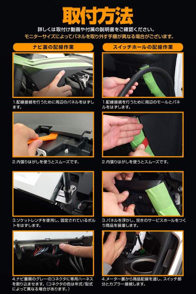 ナビキャンセラーで、純正の空スイッチボックスが、動画では、一番左手前にあったけれども、ぼくのは、左端から2番目だったので、少し手間がかかった。また、他社製よりも、LEDが光って、ONの状態が分かりやすいところが良かった。
