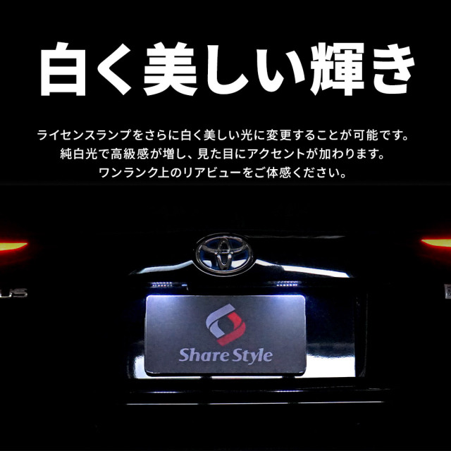 プリウス50系後期専用ライセンスユニットです。純白で美しいLEDの光がナンバー周辺を美しく照らし、ドレスアップ効果抜群です。 [ 材質 ] LED [ セット内容 ] 2p+説明書 [適合車種]プリウス50系後期