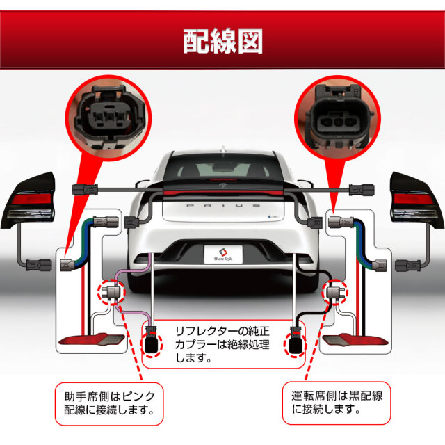 リアの視認性UP!ドレスアップにも! プリウス 60系 LEDリフレクター 2pです。 [ 材質 ] LED、合成樹脂、PC(ポリカーボネート) [ カラー ] レッド [ セット内容 ] 2p(左右) [ 装着方法 ] 純正交換、配線接続 ■適合車種 プリウス MXWH ZVW 60系 R5.1~