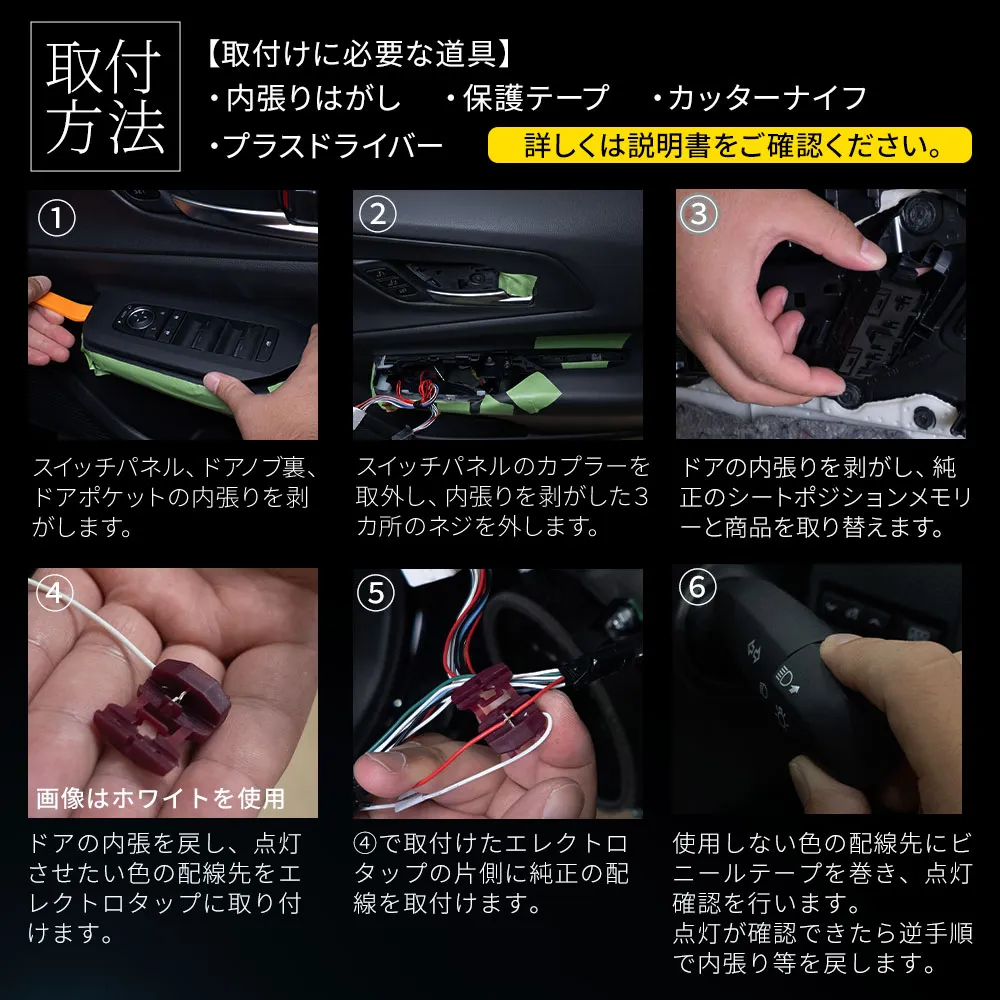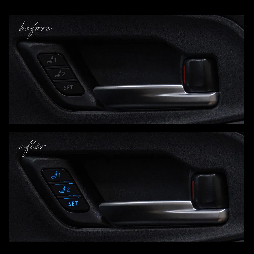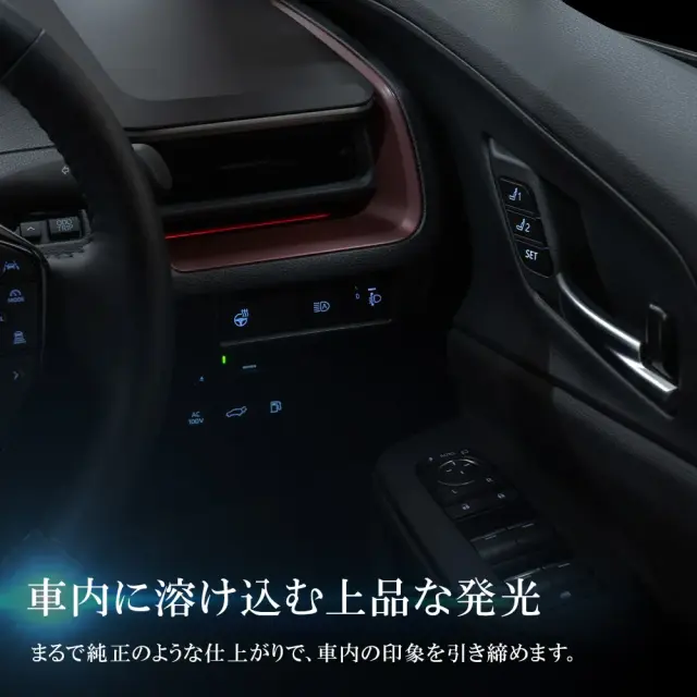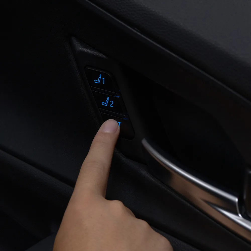 プリウス60系専用のシートポジションメモリー用LEDスイッチは、夜間でもボタン位置が分かるように設計されています。青と白の発光が選べる配線選択式で、車内に溶け込む上品な発光が特徴です。純正のような仕上がりで、車内の印象を引き締めます。視認性を高めるだけでなく、エレガントな雰囲気を演出し、ドライブをより快適にします。
