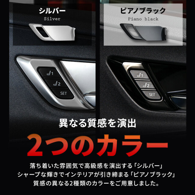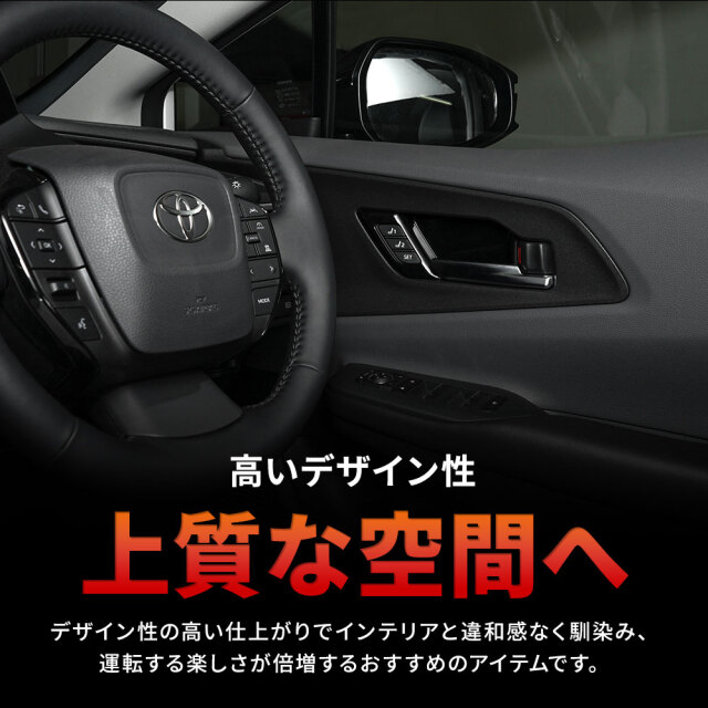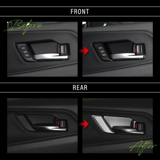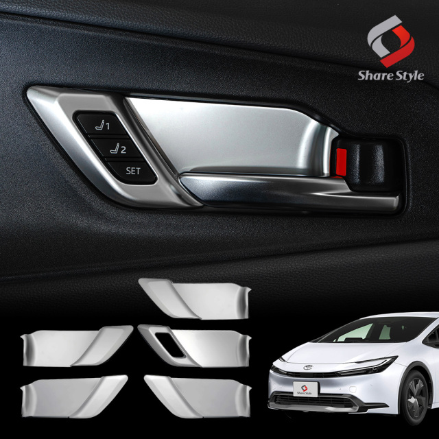ドアハンドルをドレスアップ!キズ防止にも効果的なプリウス60系専用インナードアハンドルカバー [ 材質 ] ABS樹脂 [ セット内容 ] 5p+取扱説明書 [ 装着方法 ] 裏面両面テープ貼り付け ■適合車種 プリウス 60系 MXWH ZVW R5.1~