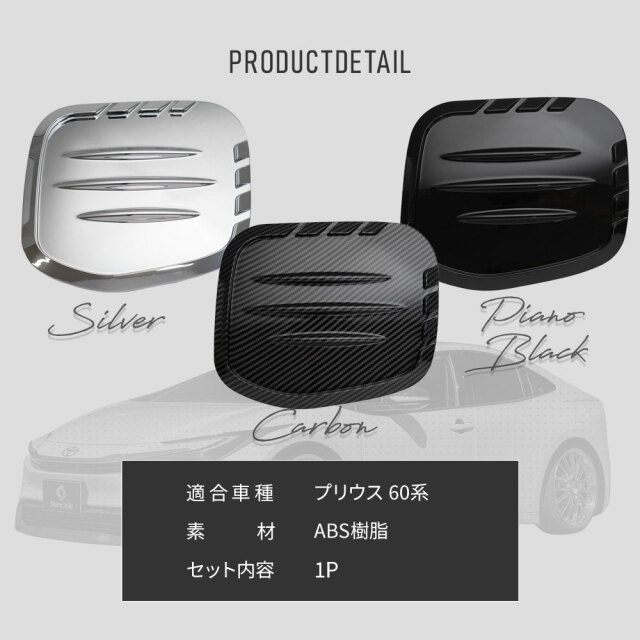 簡単取り付けで愛車をドレスアップ プリウス 60系 専用 ガソリンタンクカバーです。 [ 材質 ] ABS樹脂 [ カラー ] シルバー/カーボン/ピアノブラック [ セット内容 ] 1P+取扱説明書+粘着促進剤 [ 装着方法 ] 裏面両面テープで簡単取付 ■適合車種 プリウス MXWH ZVW 60系 R5.1~