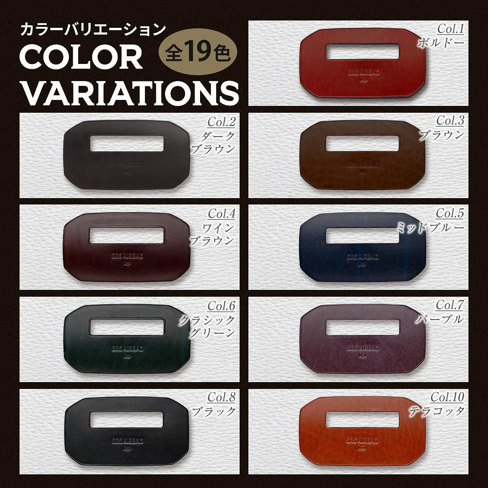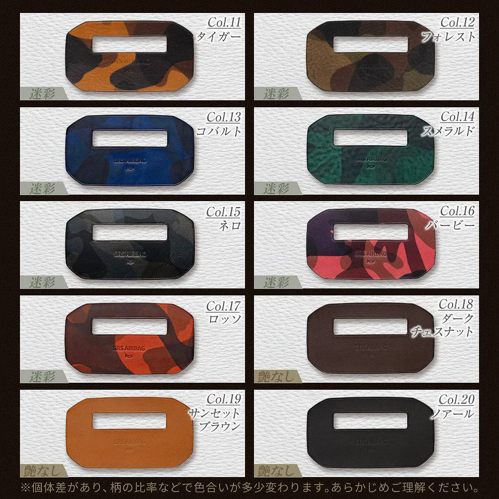 | ボルドー、ダークブラウン、ブラウン、ワインブラウン、ミッドブルー、クラシックグリーン、 パープル、ブラック、テラコッタ、迷彩タイガー、迷彩フォレスト、迷彩コバルト、迷彩スメラルド、迷彩ネロ、迷彩バービー、迷彩ロッソ、ダークチェスナット、サンセットブラウン |