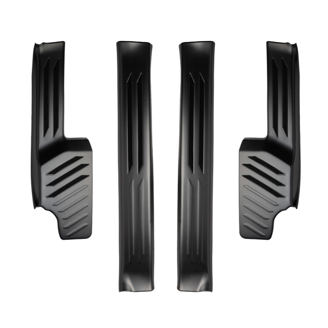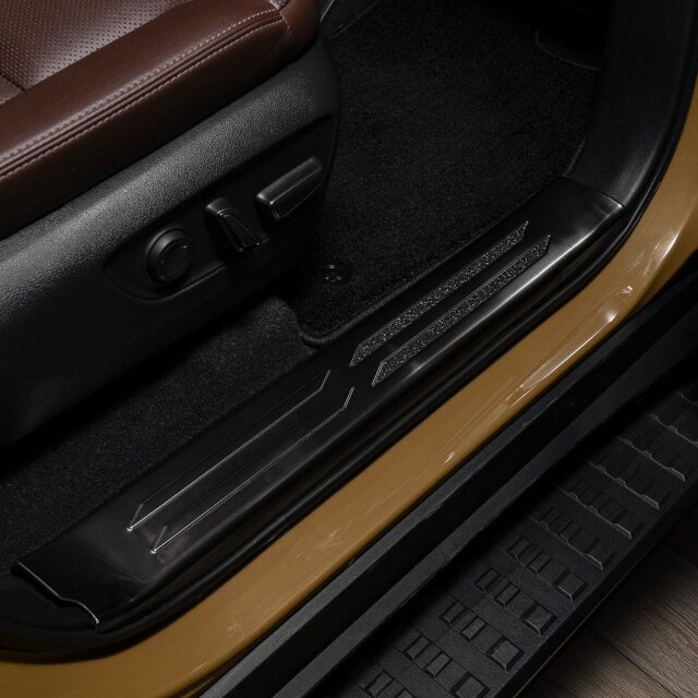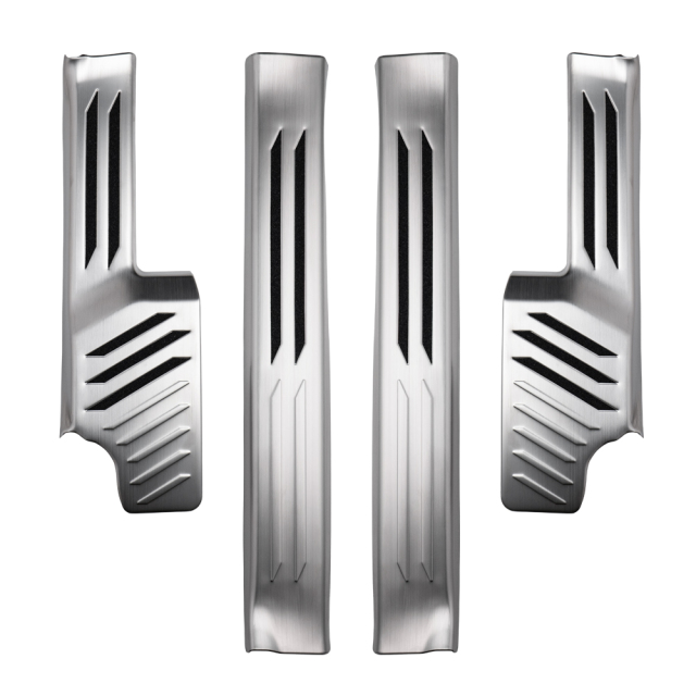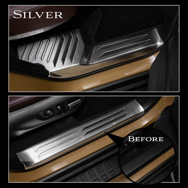 ランクル 250 インナー スカッフ プレートは専用設計された高品質なカスタムパーツです。ステンレス製で、シルバーとブラックのヘアライン仕上げが選べ、愛車のドレスアップに最適です。傷や汚れを防ぎ、既存のキズも目立たなくします。耐久性に優れたこのプレートは、汚れや傷つきやすい内装を保護しつつ、スタイリッシュな印象を与えます。ランドクルーザー250の美しさを引き立てる一品です。