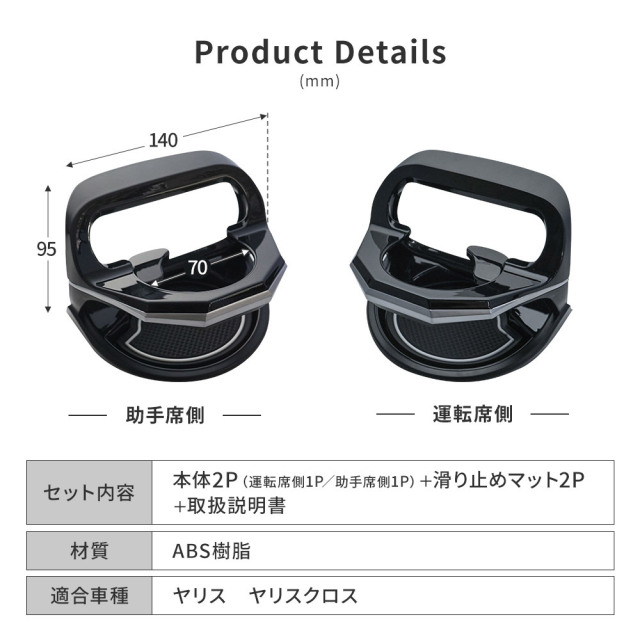 | 製品名: | ヤリス ヤリスクロス 専用 ドリンクホルダー 運転席側 助手席側 2p |