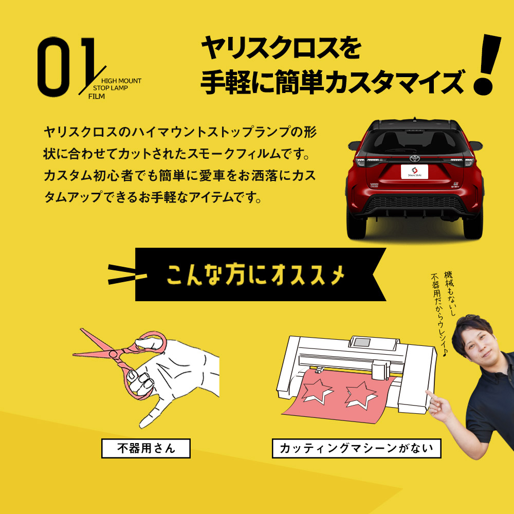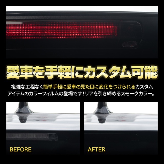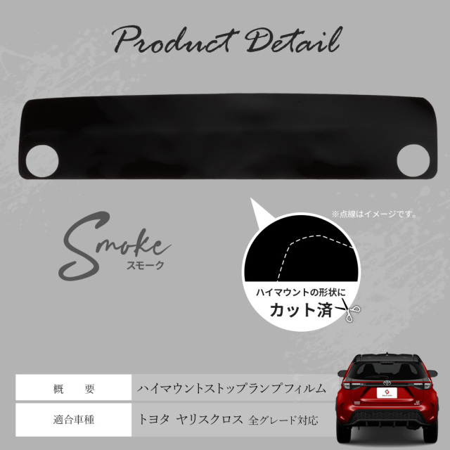 | 製品名: | カット済み ヤリスクロス 前期 後期 ハイマウントストップランプフィルム スモーク 1P 型取の手間無し カラーフィルム |